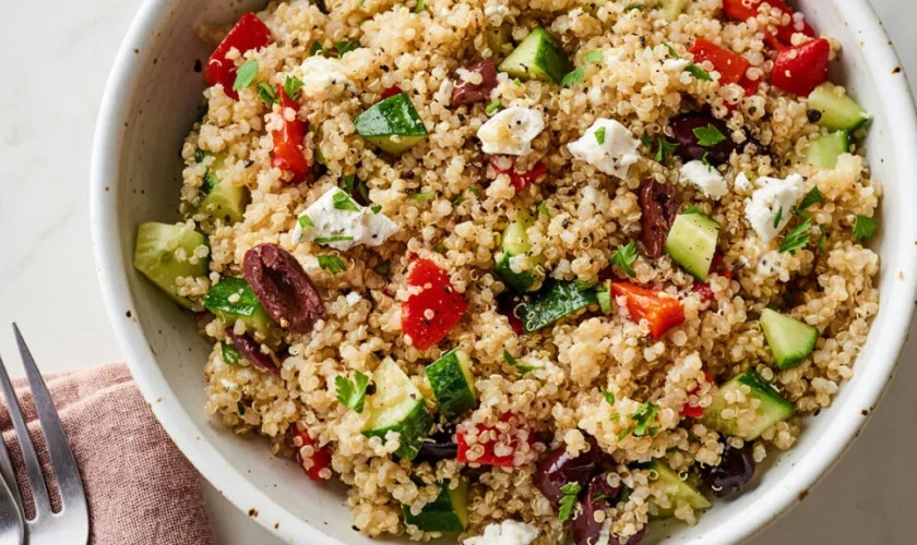 - Pişmiş kinoayı ekleyin ve karıştırarak servis yapın.